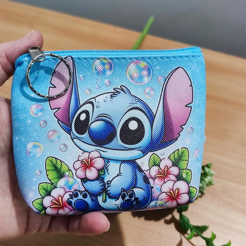 MINISO Stitch Mini Coin Purse Cartoon Cute Anime Pu Key Case Storage Bag Children Kawaii Wallet Gifts for Kids