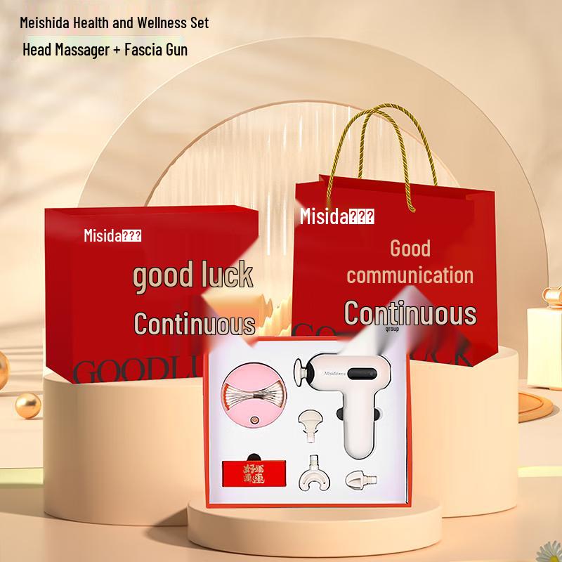 Experience targeted muscle relief with the Misida Mini Portable Fascia Gun & Head Massager Gift Set. This professional-grade massager is designed for deep tissue relaxation across your neck, shoulders, waist, and legs. Featuring a low-frequency pulse massage method and five adjustable speeds, it effectively soothes muscle tension. The compact and portable design makes it perfect for on-the-go use. This special gift set includes the J06 fascia gun and a dedicated head massager, all presented in an elegant festival gift box, making it an ideal present for well-being.