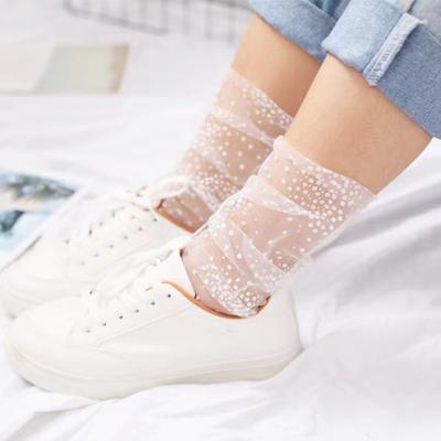 1 pár Sexy bodkované čipkované ponožky Dámske priehľadné sieťované členkové ponožky Dámske ultra tenké tylové ponožky princeznej Ženské