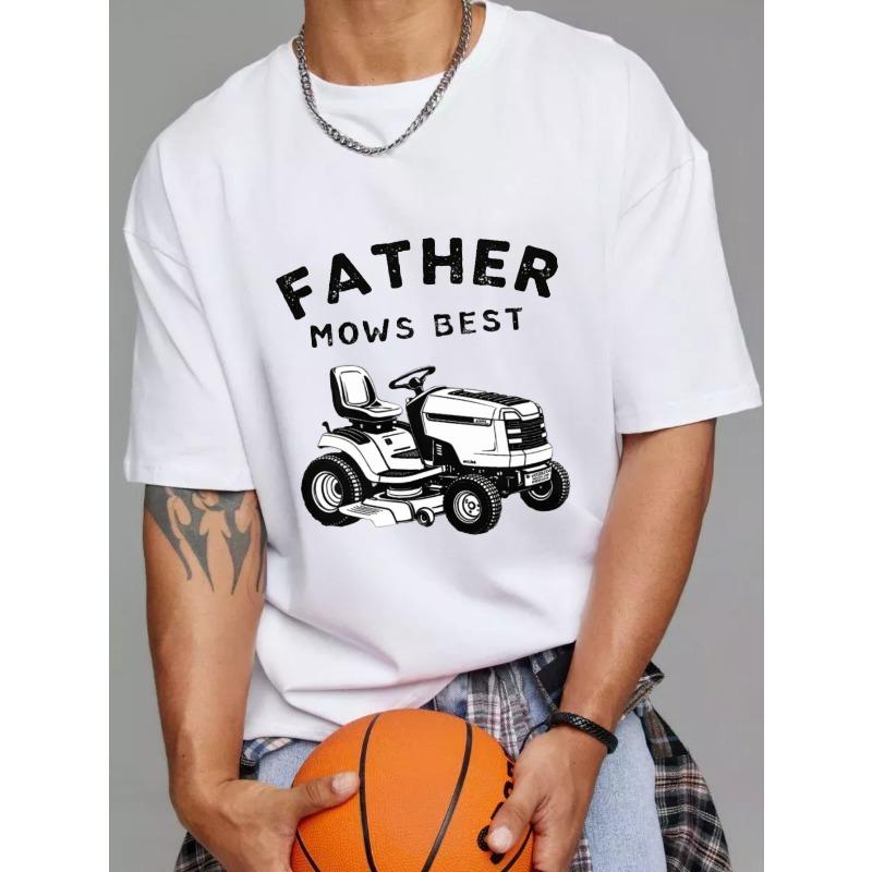 Father Mows Best T-Shirt White Lawn Tractor Graphic And Text For Father's Day Outdoor Activities