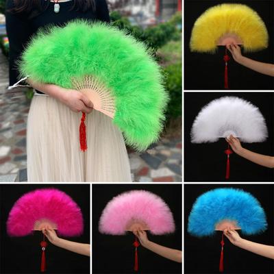 Ručný vejár z umelého peria, ručne vyrábaný v čínskom štýle, klasická dekorácia na predstavenie, elegantný skladací vejár pre čínsku tanečnú párty