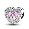 Copper Pendants Zircon Pink Love Heart Charms Beads Fit Original Pan Bracelet Bangles Diy Jewelry For Women