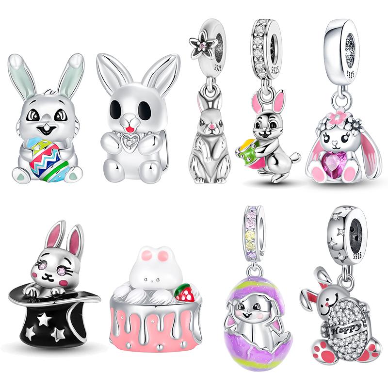 Copper Pink Easter Rabbit Egg Series Pendant Charms Fit Original Bracelet Charm Bead Necklace Diy Female Jewelry