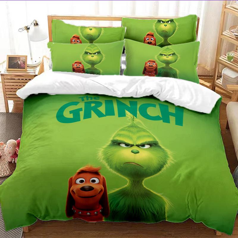 Grinch Zelené Vlasy Séria Trojdielna 3D Digitálna Obliečka na Prikrývku, Brúsna Súprava