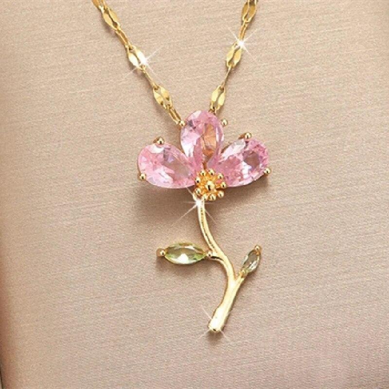 1 Pcs Luxury Cool Wind Flower Series Gold Plated Copper Pendant With Stainless Steel Chain Combination Of Collarbone Necklace