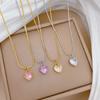 1 Pcs Women Fashion Accessories Inlaid Pink Glass Copper Pendant Necklace Hundreds of Light Luxury Style Jewelry