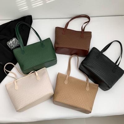 Veľkokapacitná tkaná vzorovaná vrúbkovaná taška Tote pre ženy, jesenná módna textúra, všestranná kabelka cez rameno