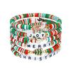 Tento korálkový náramok obsahuje odolné kovové a polymérové korálky, ktoré zaisťujú celodenné pohodlie a dlhú životnosť.. Navrhnuté vo sviatočných vianočných farbách – klasickej bielej, červenej a zelenej – a ozdobené sezónnymi vzormi, dodáva kreatívny nádych vašim vianočným oslavám..