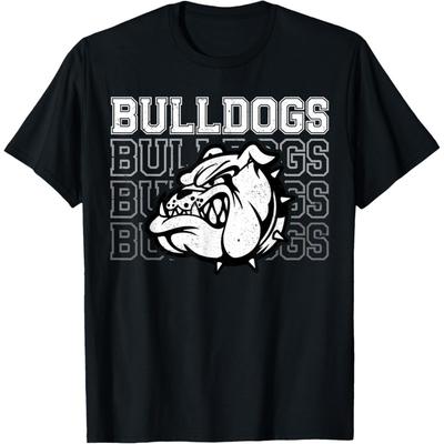 Bulldogs School Spirit Orange Black Faux Sequin Teacher T-Shirt