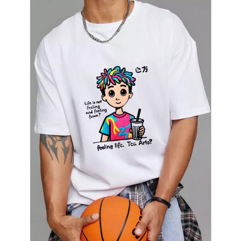 White T-Shirt With Colorful Cartoon Character And Text Design For Casual Wear