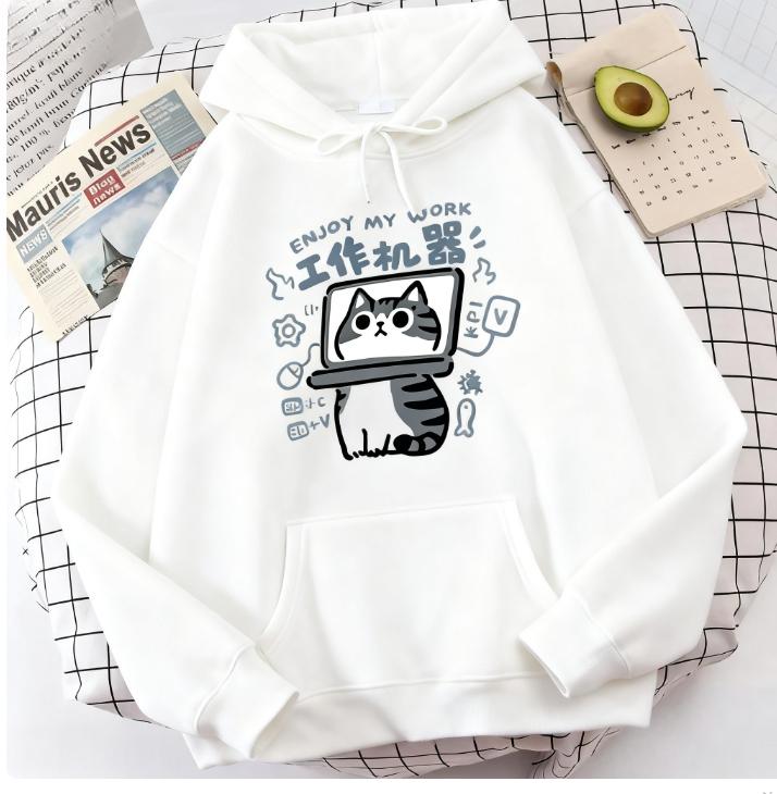 2025 Cartoon Cat Is An Abstract Work Machine Mans Pullover Comfort Harajuku Wei Clothing Leisure Youth Hoody Youth Cartoon