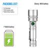 Super Bright LED Flashlight Rechargeable Torch Portable Work Light Outdoor Camping Light with Telescopic Zoom