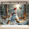 Whimsical Winter Snowman Scene Metal Tin Sign - Starry Night, Full Moon, Shiba Inu Dog, Snowflakes, Festive Home Wall Decor for