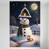 Magical Winter Night Snowman Christmas Tree Church Metal Tin Sign Vintage Xmas Decor for Home Wall Art