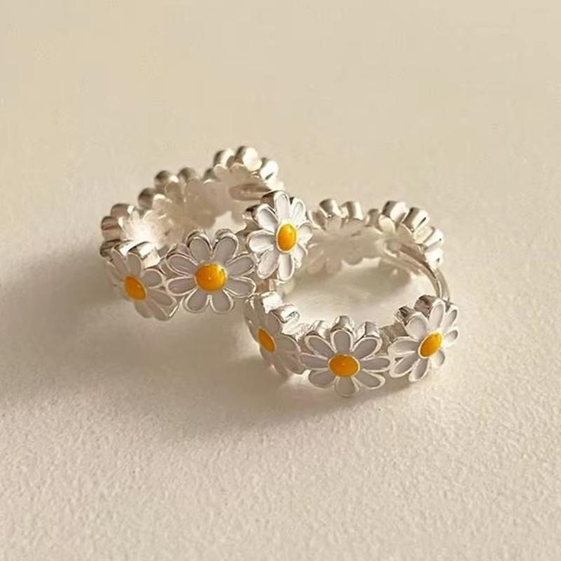 Huitan Daisy Flower Hoop Earrings Teen Girls Daily Accessories Exquisite Female Versatile Delicate Sweet Lady Summer Jewelry