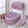 Four Seasons Lace Toilet Cushion Three Piece Flannel Printing Toilet Seat Set with U-shaped Zipper Beauty Toilet Dust Cover