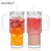 KEMORELA 740ML Veľký rebrovaný sklenený pohár s rúčkou a viečkom Sada 1/2 priehľadných sklenených pohárov s opakovane použiteľnými slamkami na ľadovú kávu