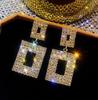 Rscvonm Luxury Shining Crystal Drop Earrings Gold Color Square Rhinestone Dangle Earrings For Women Wedding Party Jewelry