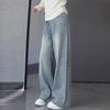 Light-colored wide-leg jeans women's high-waisted autumn new large-size fat mm loose and thin pear-shaped body straight pants