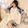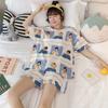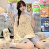 Indulge in comfort and charm with this delightful plus-size summer pajama set. Featuring a playful Donald Duck design, this short sleeve homewear offers a fun and whimsical touch to your loungewear. Crafted from smooth artificial silk, with a touch of luxurious milk silk for added softness, this pajama set is perfect for staying cool and comfortable at home. Enjoy the blend of style and ease with these animated, cozy pajamas.