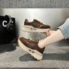 Autumn new leather round head thick sole heightening versatile sports shoes women's light casual shoes