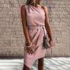 JKASHDK Dámska móda Leto Jar Jednofarebná potlač Ležérne šaty bez rukávov so šikmým golierom s vysokým pásom