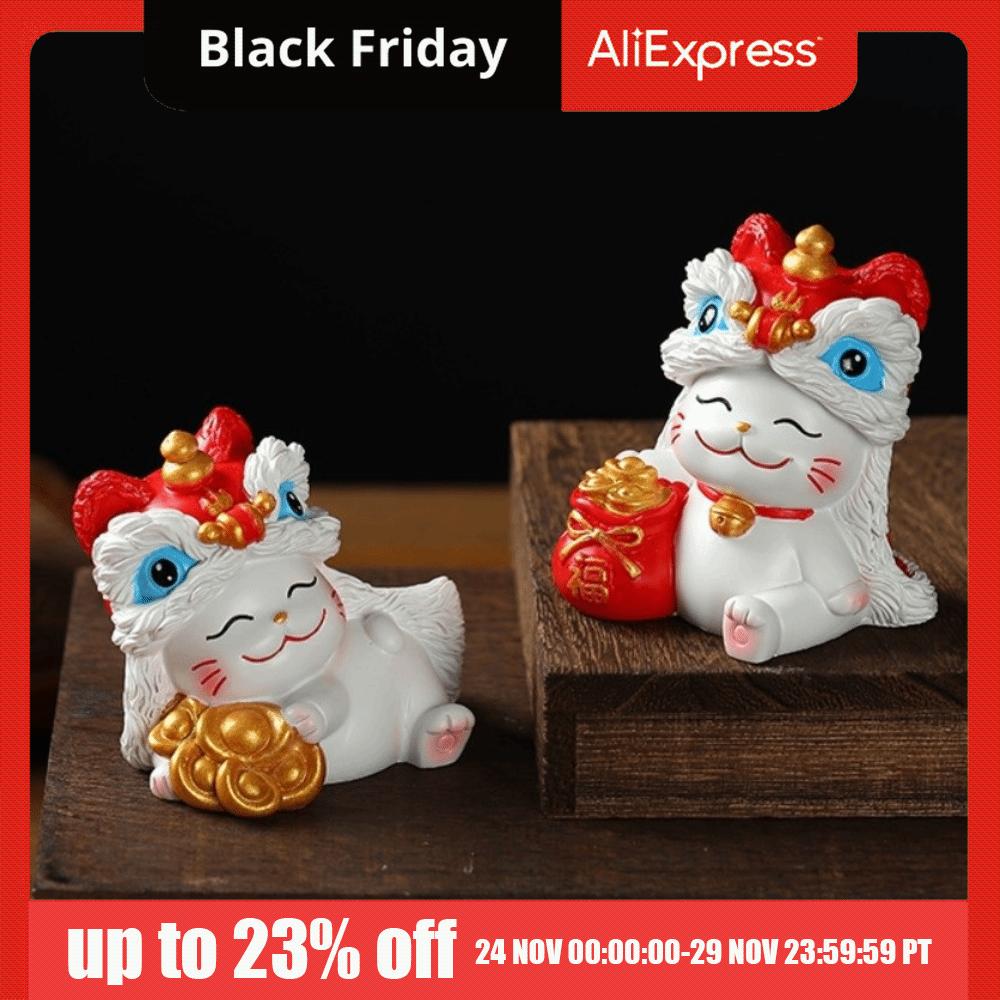 Kawaii Beckoning Cat Desktop Ornament Good Fortune Wealth Lucky Cat Sculpture Decoration Figurine New Year Cat Statue
