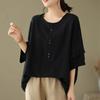 New Cotton Linen Retro Lazy Shirt Women's Summer Thin Loose Short-sleeved Versatile Top