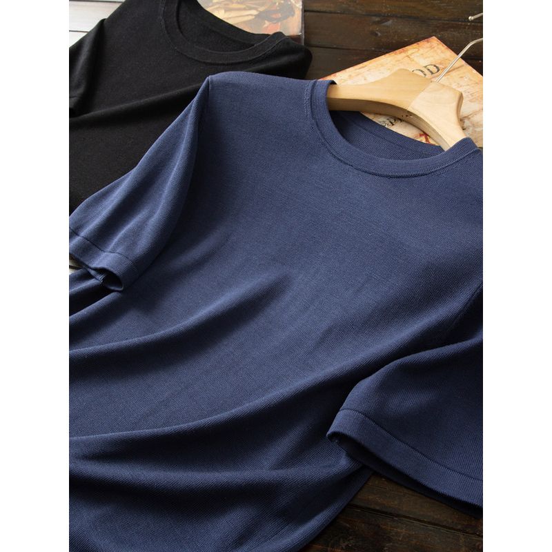 Heavy Rare Italian Order Mulberry Silk/Long-staple Cotton High end Men's Summer Knitted Short sleeve T-shirt Base
