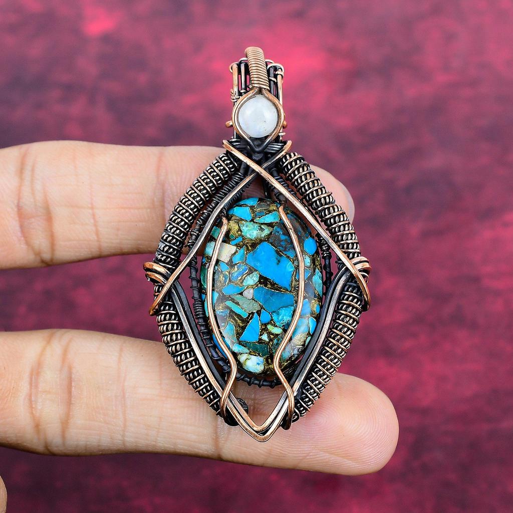 Copper Chrysocolla Pendant Copper Wire Wrapped Moonstone Jewelry Gemstone Pendant