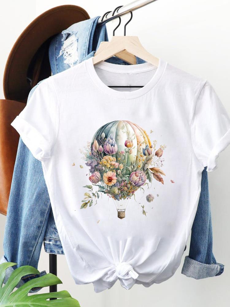 (Asian Size) Clothing T Shirt Women Fashion Tee Top Woman Print travel flower cute Female Short Sleeve Graphic T-shirts