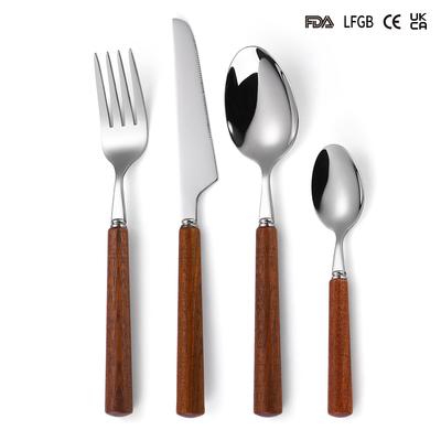 4pcs Western Tableware Set Cutlery Stainless Steel wood Handle Dinner Fork Dessert Spoon Steak knife Kitchenware set