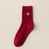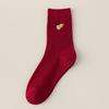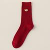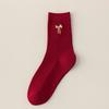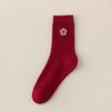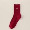Big Red Socks New Year'S Red Socks Medium Tube Sweat-Absorbing Cotton Socks Embroidered Versatile Year Of The Horse Double Needle Stacking Socks