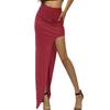 Sexy Women Solid Color High Waist Side Slit Knitted Elastic Bodycon Long Skirt