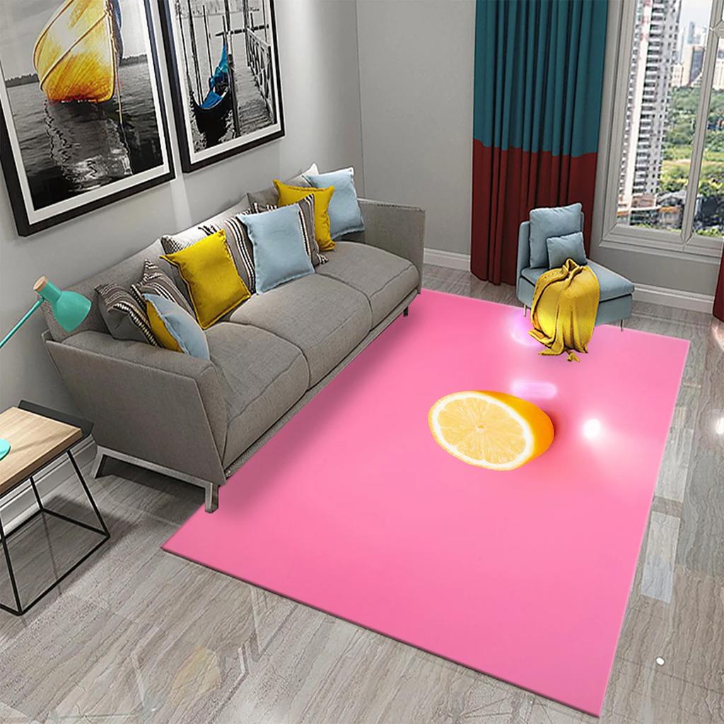 Yellow Lemon Rug Fruit Theme Carpet Pink Background Floor Carpets Bedroom Living Room Rectangle Rugs Decor Door Mat Yoga Mats
