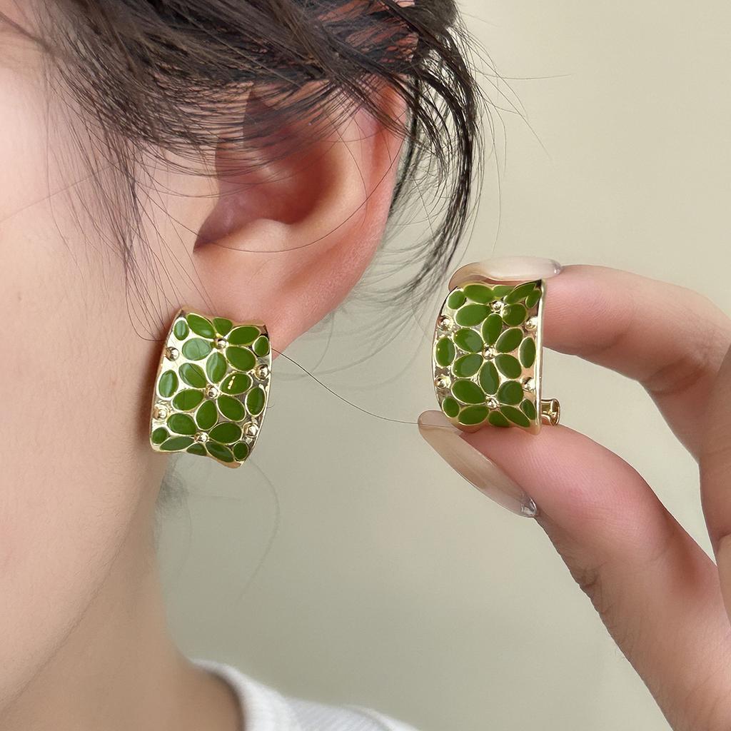 Super Fairy Green Texture Dripping Flower C-Shaped Earrings Fresh And Sweet Niche Earrings Light Luxury Premium Earrings