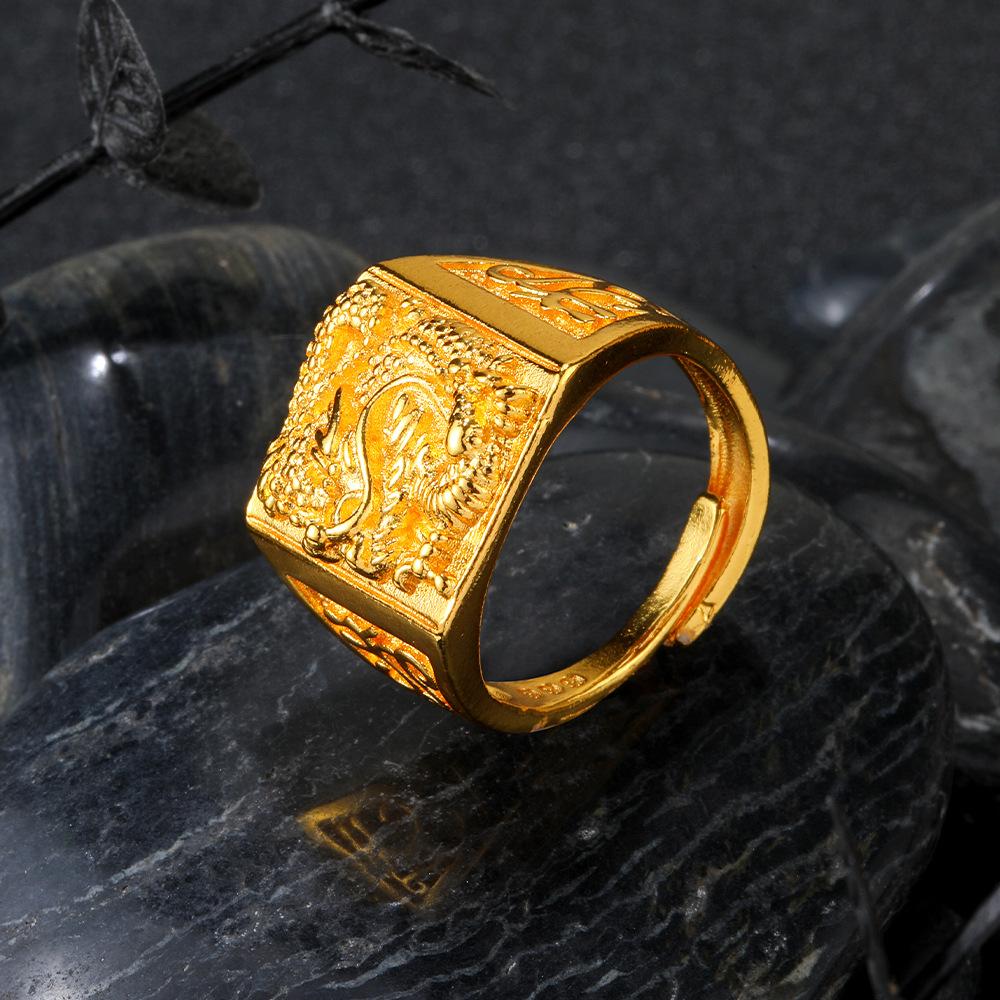 Men'S Embossed Dragon Ring Fashion Temperament Men'S Dragon Ring Lucky Treasure Fortune Brass Ring