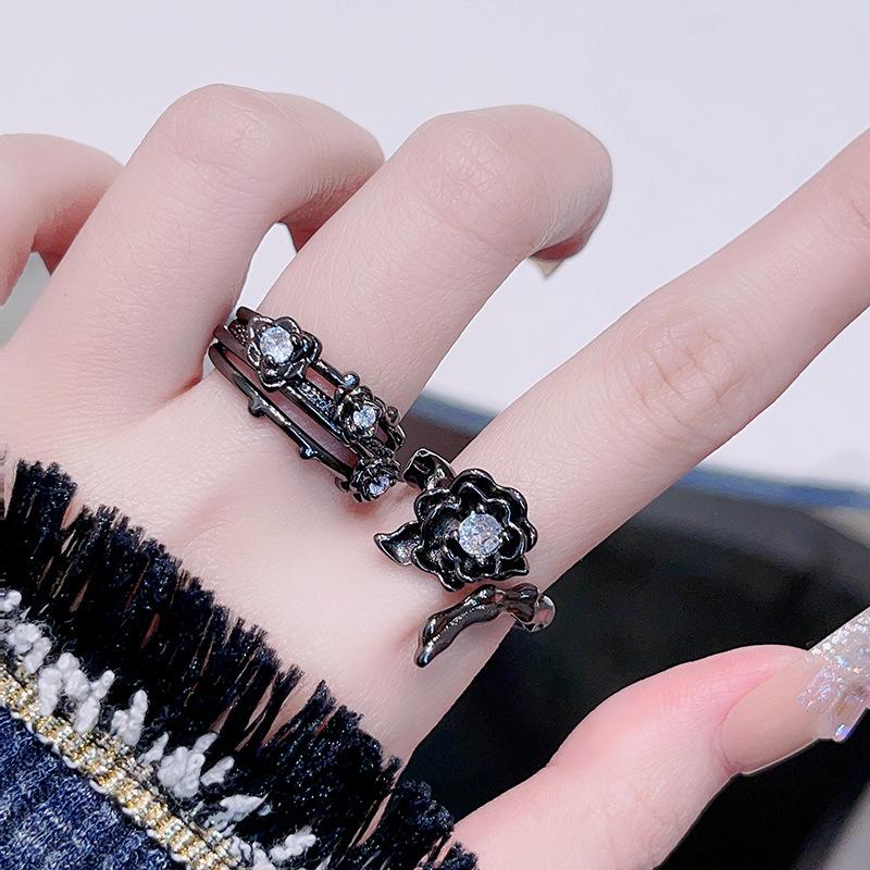 Rose Thorn Open Ring, Personalized Dark Wind Small Design, High-End Sense Diamond-Encrusted Couple Ring, Gift For Women