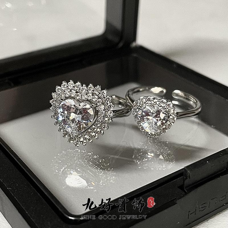 Caibao Light Luxury Main Stone Zircon High-End Sense Of Love Full Of Diamonds Simple Opening Ring Cold Wind