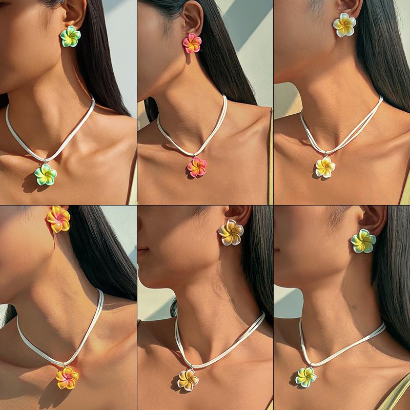 Bohemian Style Flower Braided Earrings Necklace for Woman Fashionable Accessories Travel Vacation Beach Party Jewelry Decoration