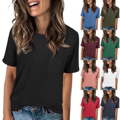 Dámske Módne Jednofarebné Okrúhly Výstrih Krátky Rukáv Vrecká Pulóver Ležérne Tričko Top