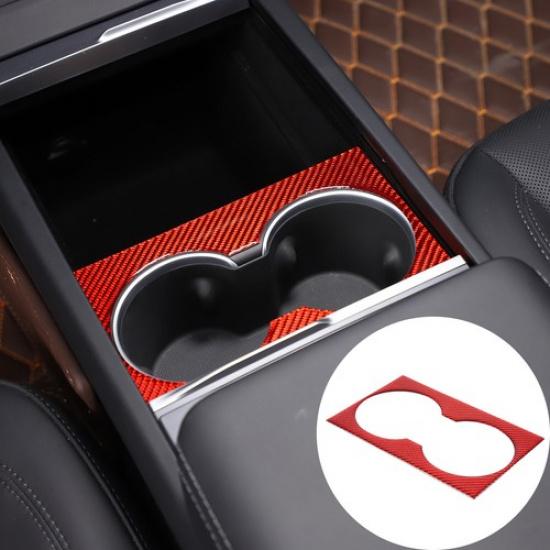 Red Carbon Fiber Center Cup Holder Panel Trim Sticker For Tesla Model 3 -24