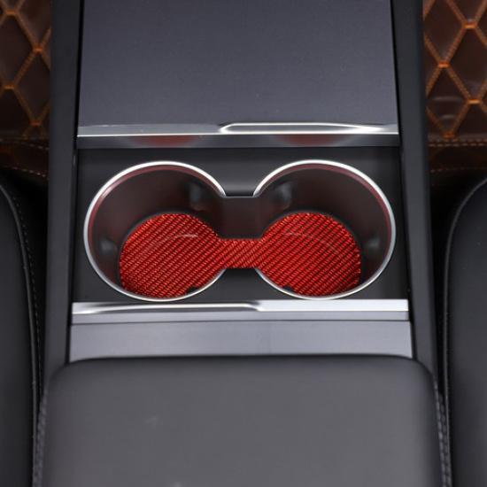 Red Carbon Fiber Center Cup Holder Water Mat Trim Sticker for Tesla Model 3 23+