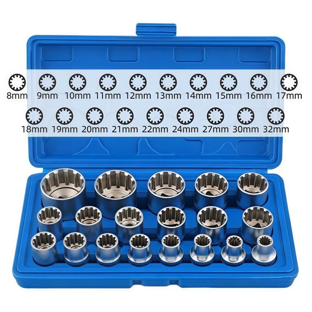 19 Pcs 8-32mm Spline Socket Set Metric Socket Wrench Set 12 Point Socket Set Repair Tool