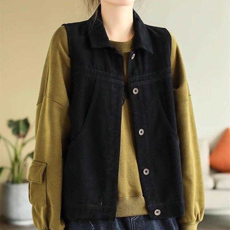 Retro Work Women's New Style Stitching Button Pocket Fashion Solid Color Casual Stacked Lapel Vest
