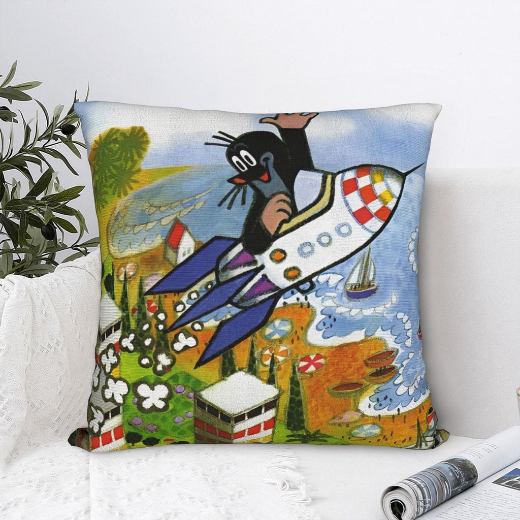 Soft The Little Mole Krtek Pillowcase Fabric Cushion Cover Gift Cartoon Floral Throw Pillow Case Cover Home Zipper
