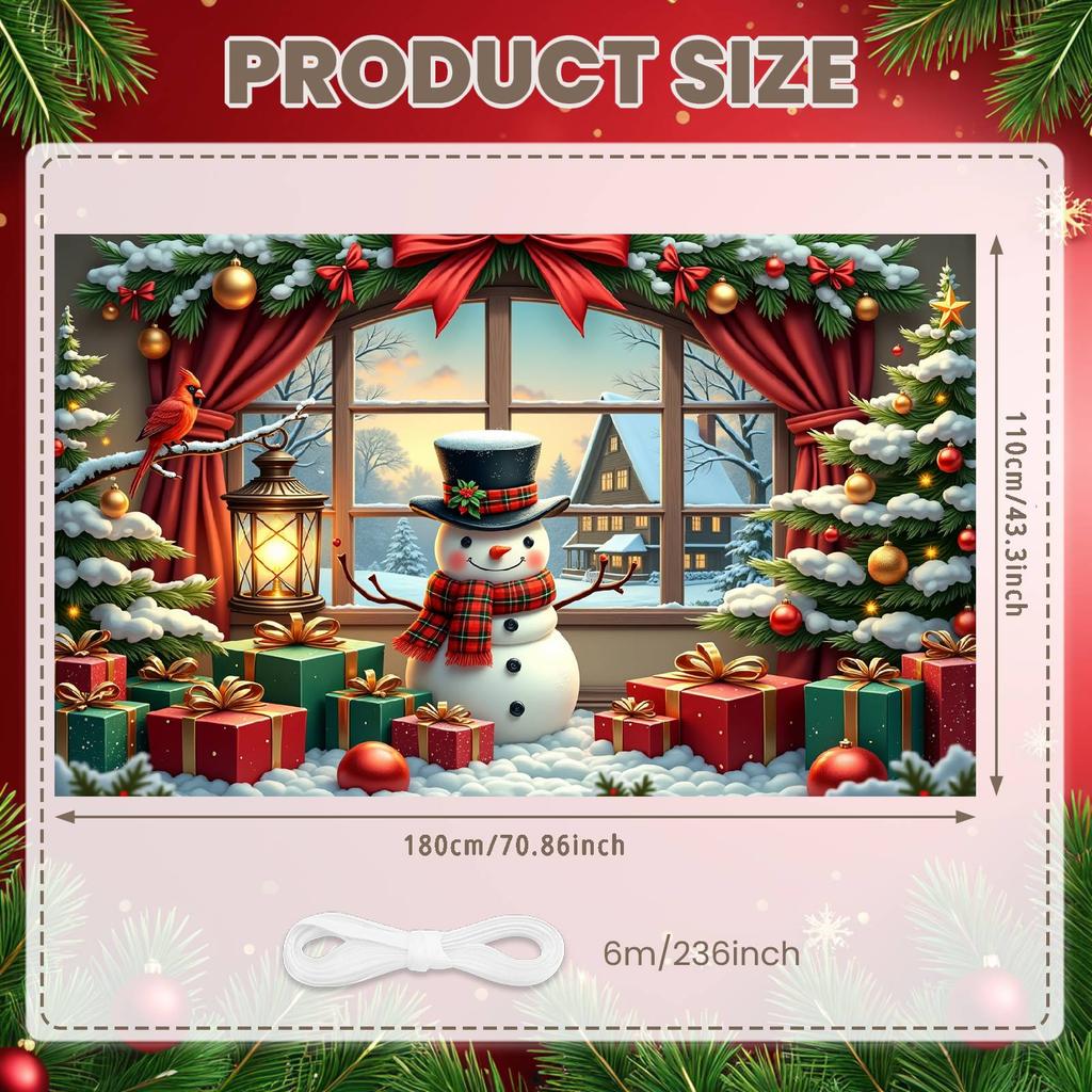 Festive Banner Gold Ornament Winter Backdrop Christmas Decor Banner Snowman Design Holiday Display For Holiday Gathering Xmas