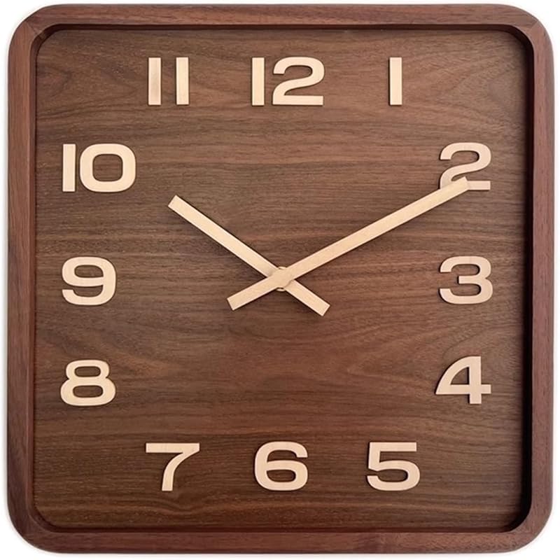 Wall Clock Wood Square Wall Clock Vintage Clock Walnut Mute Chinese Simple Seat Clock No Punch Living Room Wall Clock Alarm Clock Wall Clocks(Medium)