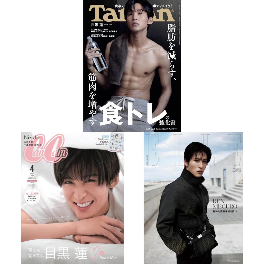 Brand-New Japan Magazines – Ren Meguro Covers – Tarzan No.819 (2021), CanCam Apr. 2023 Special Edition, ELLE Japon