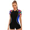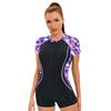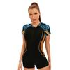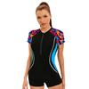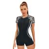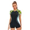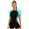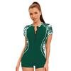 Women's Sports Conservative One-Piece Swimsuit Slim-Fit Boxer Short-Sleeve Swimsuit